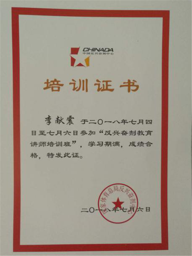 按照国家体育总局2018年反兴奋剂教育工作要求,为积极获得山东省第十四届大学生运动会参赛资格,切实提高运动员的反兴奋剂意识和能力,太阳成集团tyc539选派李献震老师参加了7月4日至6日在济南举办的山东省高校反兴奋剂教育讲师培训班。