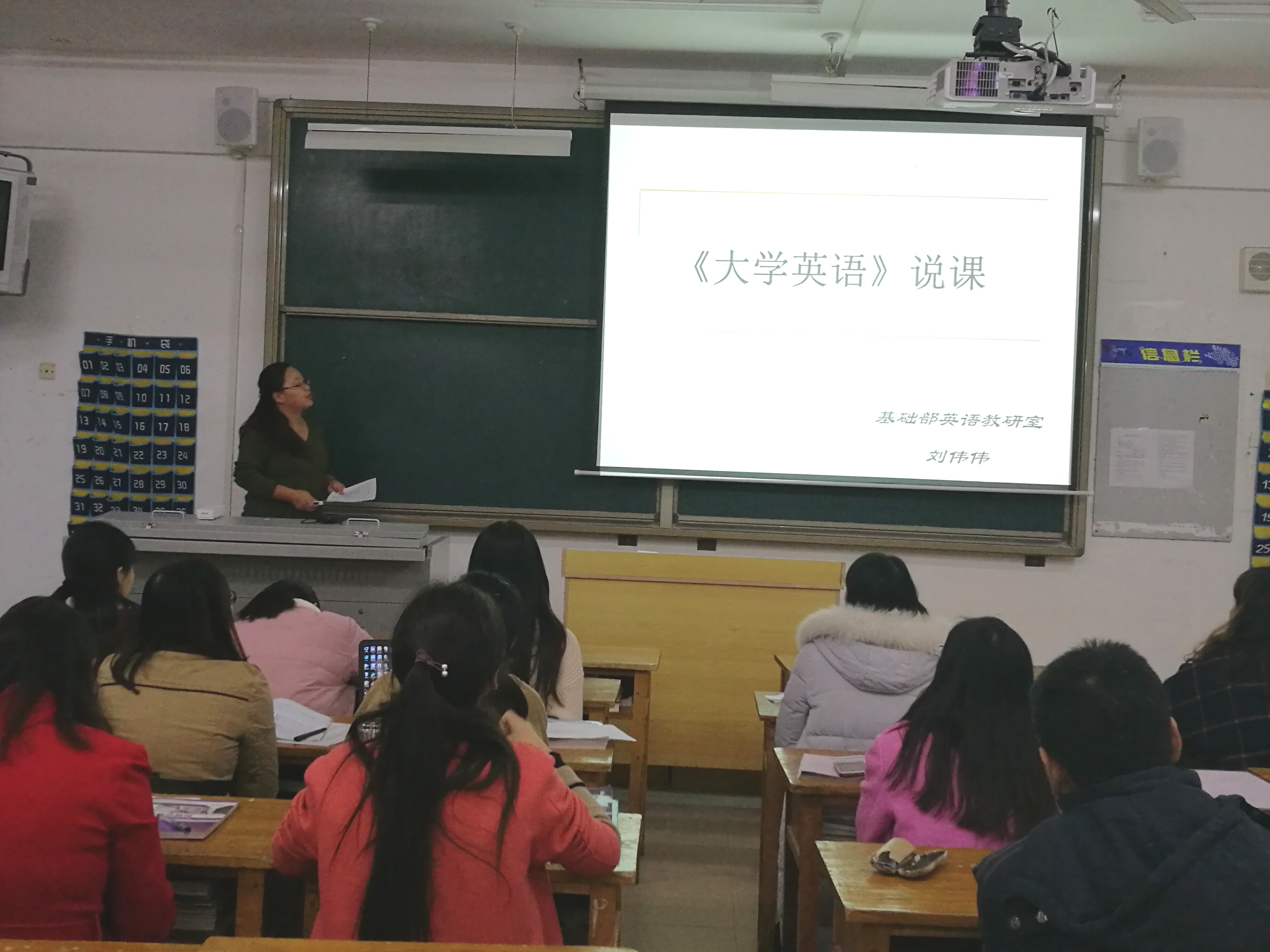 按照我校有关教师说课比赛活动的通知及我部关于教师说课比赛的部署要求,11月16日、17日下午,英语教研室举行了教师说课比赛活动,英语教研室全体教师参加了此次比赛,英语教研室主任刘伟伟主持和组织了本次比赛活动。