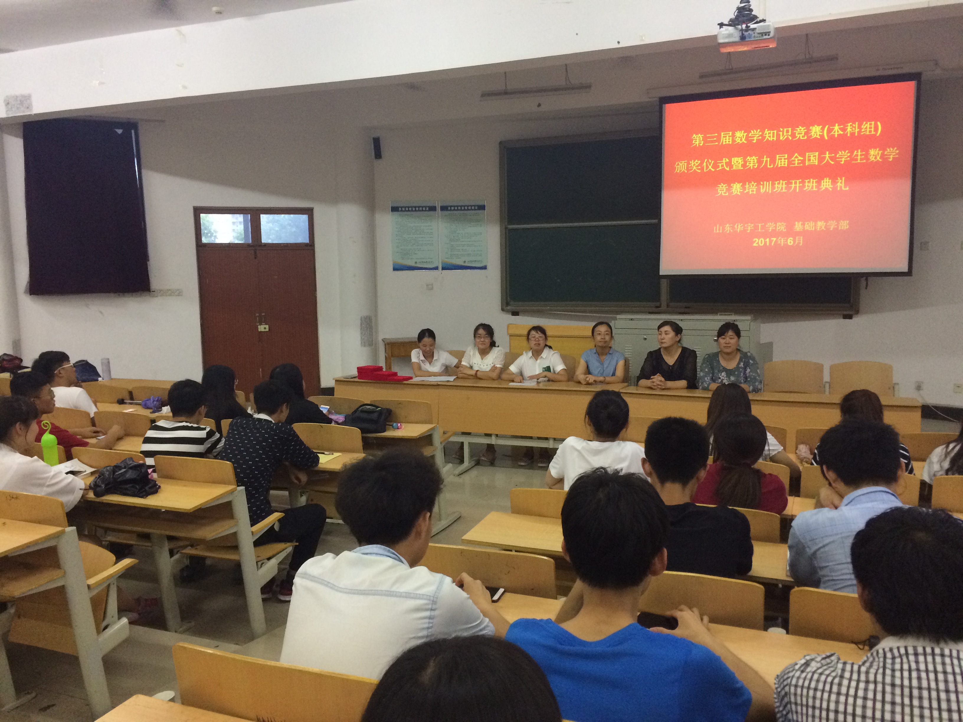 6月21日,太阳成集团tyc539第三届数学知识竞赛(本科组)颁奖典礼暨第九届全国大学生数学竞赛培训班开班仪式在10号楼F301隆重举行。本次活动由基础教学部数学教研室相关老师及参加培训的50名学生参加。特邀基础教学部李琦主任出席。