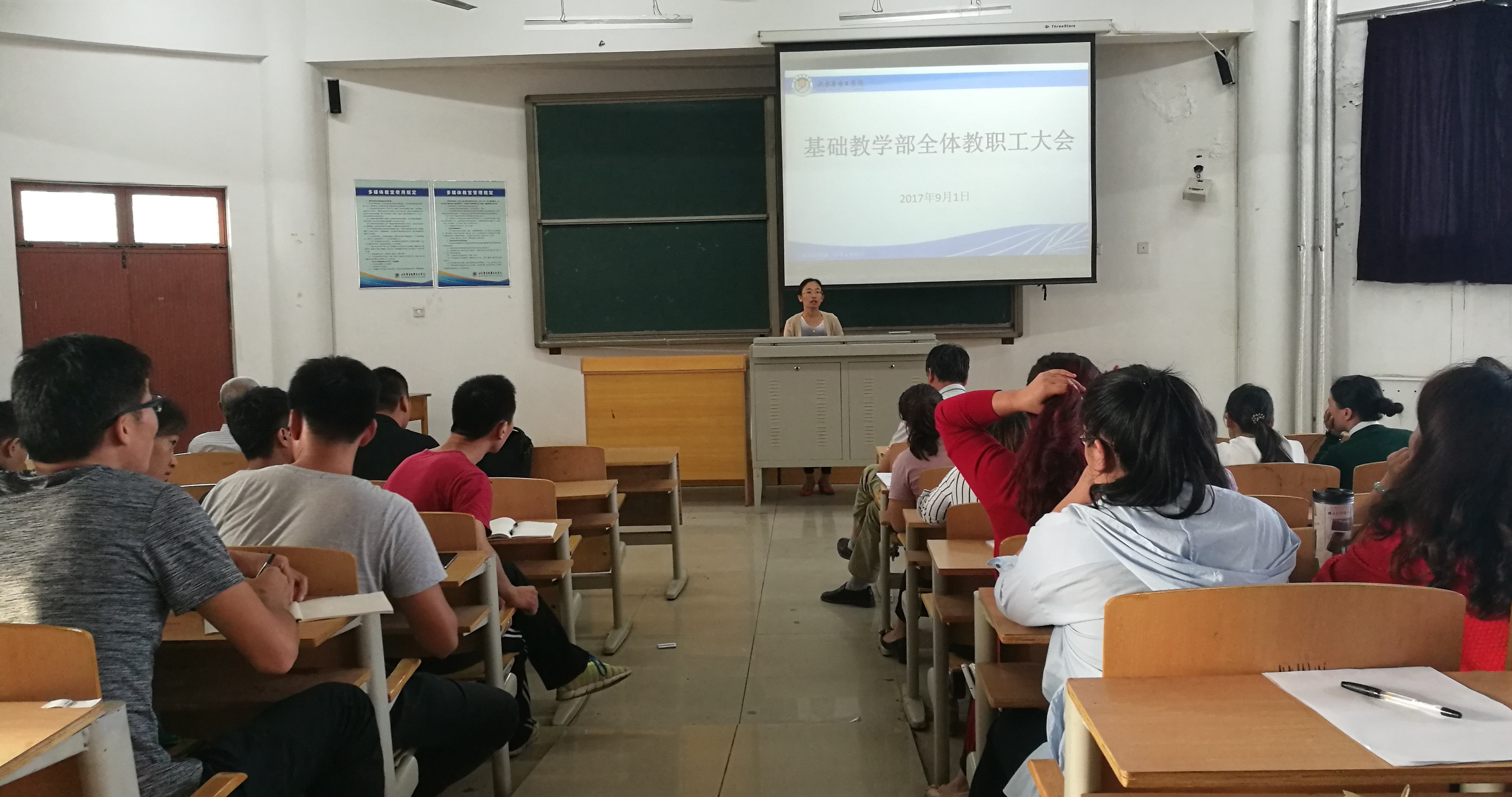 9月1 日下午,基础教学部在10号楼F301召开了全体教职工大会。基础教学部全体教师参加了此次会议,会议由基础教学部副主任李琦主持。
