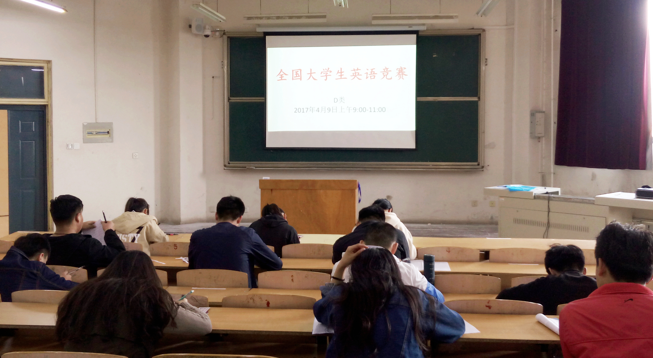 为贯彻教育部关于大学英语教学改革精神,展现我校大学生英语基础知识和基本技能,全面提高我校大学生英语综合运用能力,2017年4月9日,全国大学生英语竞赛(NECCS)初赛选拔考试在我校成功举办。我校共有421名学生报名参加了本次竞赛。