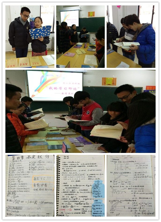 为帮助学生树立端正的学习态度,营造和谐上进的学习风气,数学教研室于2015年12月30日在8号楼103开展了“我的学习印迹”数学笔记展览活动。15级本科学生及数学教研室全体教师共同参加此次活动。