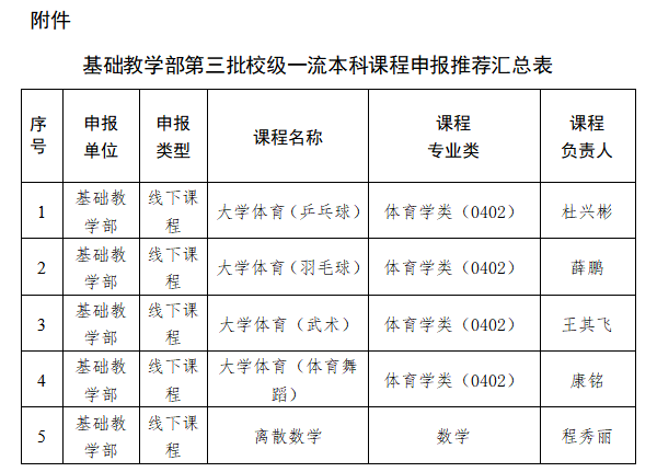 基础教学部关于开展第三批校级一流本科课程申报评审结果公示