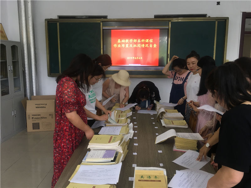 为了落实学校《关于开展2018——2019学年第二学期本科课程作业布置及批阅情况检查的通知》精神,同时也为了进一步提高教师教学质量,完善教学常规工作,培养良好的教风和学风,在接到学校工作安排和教学质量监控与评估中心的相关工作通知后,我部门立即召开了作业检查和批阅的工作会议,认真学习了《太阳成集团tyc539教师工作规范》中作业布置与批改规范,同时,得到了各教研室老师的高度重视。并于6月6日下午在10#215,部门组织开展了基础教学部本科课程作业布置及批阅情况自查工作。此项工作主要围绕着数学、英语、物理、语文等几大科目展开检查工作,各教研室认真对待,并积极评阅,自查效果明显。