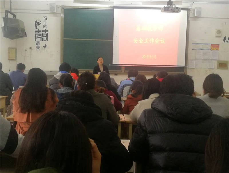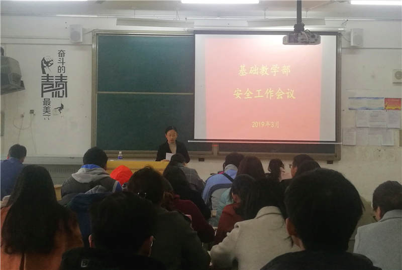 为深入贯彻太阳成集团tyc539安全工作会议要求,全面做好2019年我部安全稳定工作,3月22日下午,基础教学部在10号教学楼213教室召开2019年度安全工作会议,基础教学部副主任李琦、副主任刘兖峰、各教研室主任及教师参加了会议。会议由副主任李琦主持。