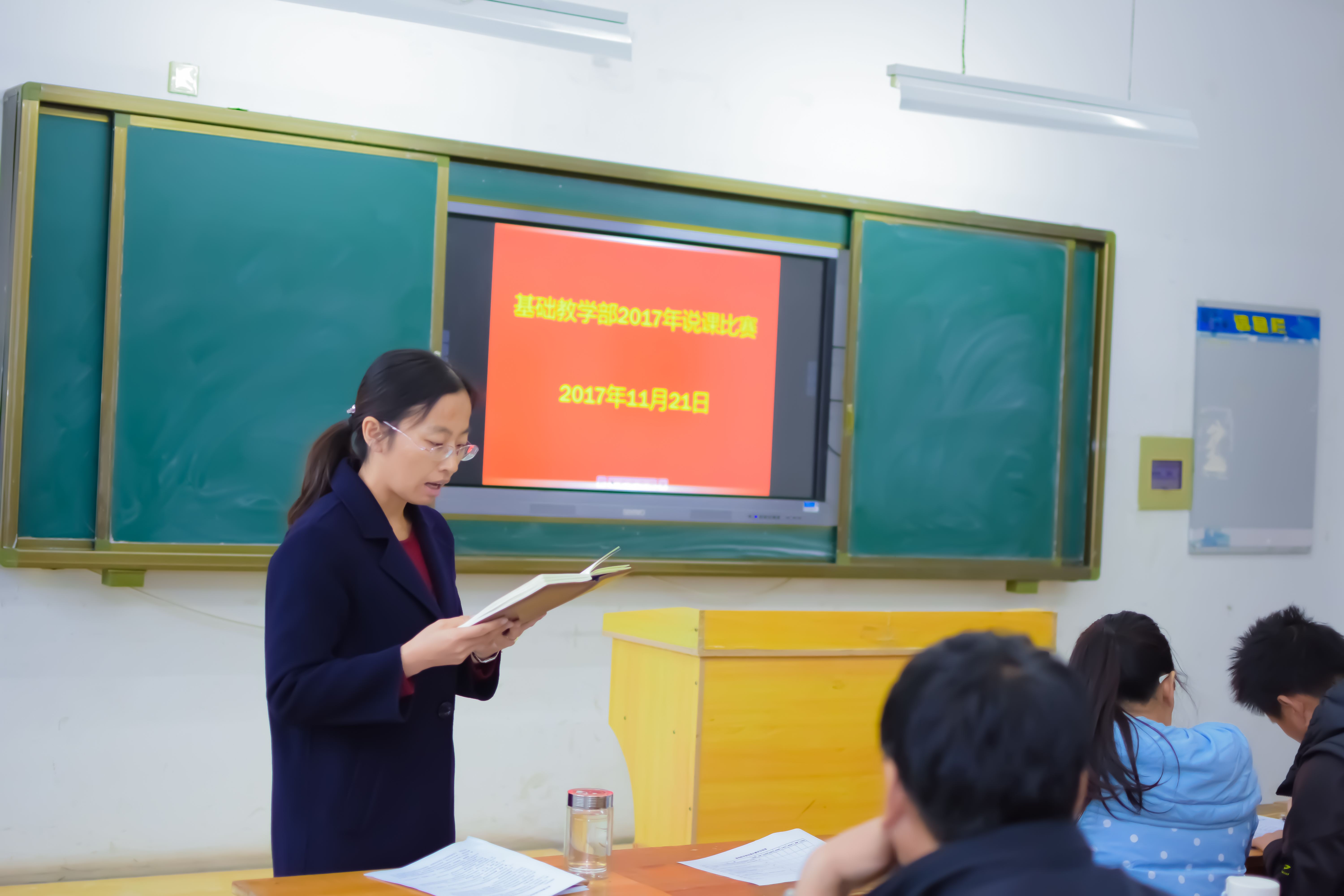 为了进一步提升教师的教学能力和业务水平,按照我校关于教师说课比赛的活动通知及基础教学部有关教师说课比赛的部署要求,基础教学部于11月中旬开展了教师说课比赛活动。经过各教研室初赛选拔,我部数学、英语、物理和体育教研室分别推荐2名教师参加部门决赛。11月21日下午4时,基础教学部在10号楼210举行说课比赛活动,比赛由基础教学部副主任李琦主持,各教研室分别选派2名教师作为评委,基础教学部全体教师观摩了此次比赛。