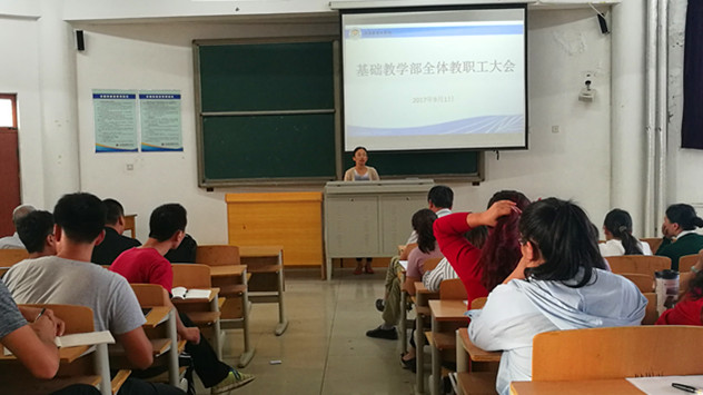 9月1 日下午,基础教学部在10号楼F301召开了全体教职工大会。基础教学部全体教师参加了此次会议,会议由基础教学部副主任李琦主持。