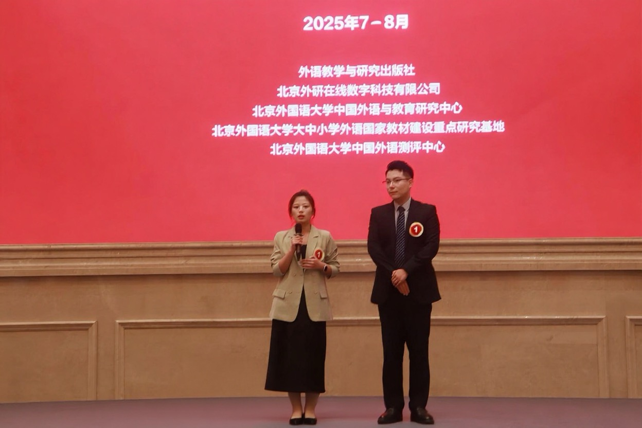 外研社“教学之星”大赛创办于2013年,是面向全国高校外语教师的大型公益赛事,在全国高校外语教育领域具有极高的权威性和广泛的影响力,被连续列入中国高等教育学会“全国普通高校教师教学发展指数”本届大赛的主题为“外语教材的有效使用:讲述中国,沟通世界”今年4月启动,吸引了来自全国300余所高校的565组英语教师团队参赛。在全国半决赛中,我院教师团队与来自南昌大学、河南大学等学校的团队同台竞技,赵月老师代表团队展示教学设计,李海军老师展示教学实践,运用先进理念,坚持立德树人,有机融合数智技术,得到评委的一致认可,最终荣获2025年外研社“教学之星”大赛全国总决赛三等奖。